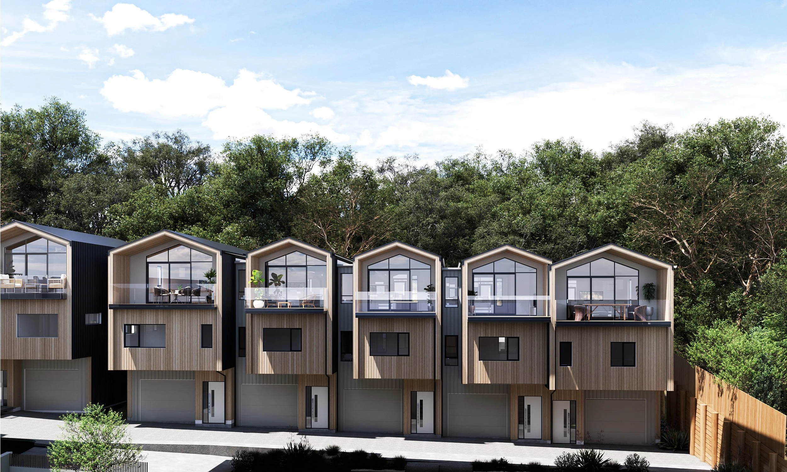 Careful attention to architectural detail and design language has allowed these townhouses to work with the natural landscape, not against it.